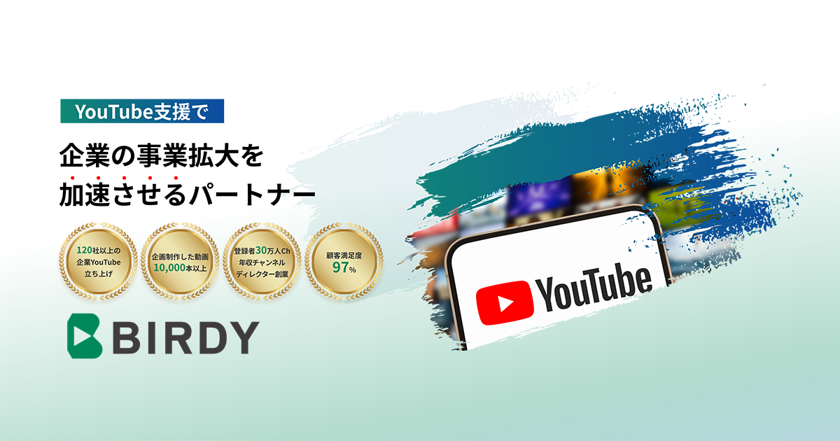 株式会社BIRDYは、企業向けに特化したYouTube運用代行・動画制作・コンサルティングを行っており、戦略設計から撮影・編集、内製化支援までを一気通貫でサポートしております。
